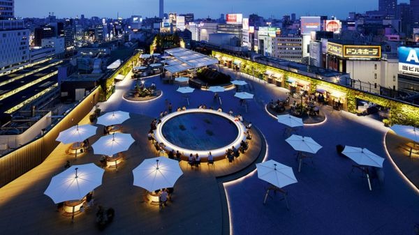 百貨店の屋上とは思えないほど緑豊かで開放的な空間が広がっており、食事や休憩をしながらリラックスした時間を過ごせます。モネの睡蓮をモチーフにした池を中心に季節の花や緑が楽しめるように整備されており、夜間のライトアップでは、ロマンチックなナイトデートを楽しめます。ベンチやテーブル席も多いので、のんびり過ごしたいカップルにおすすめです。